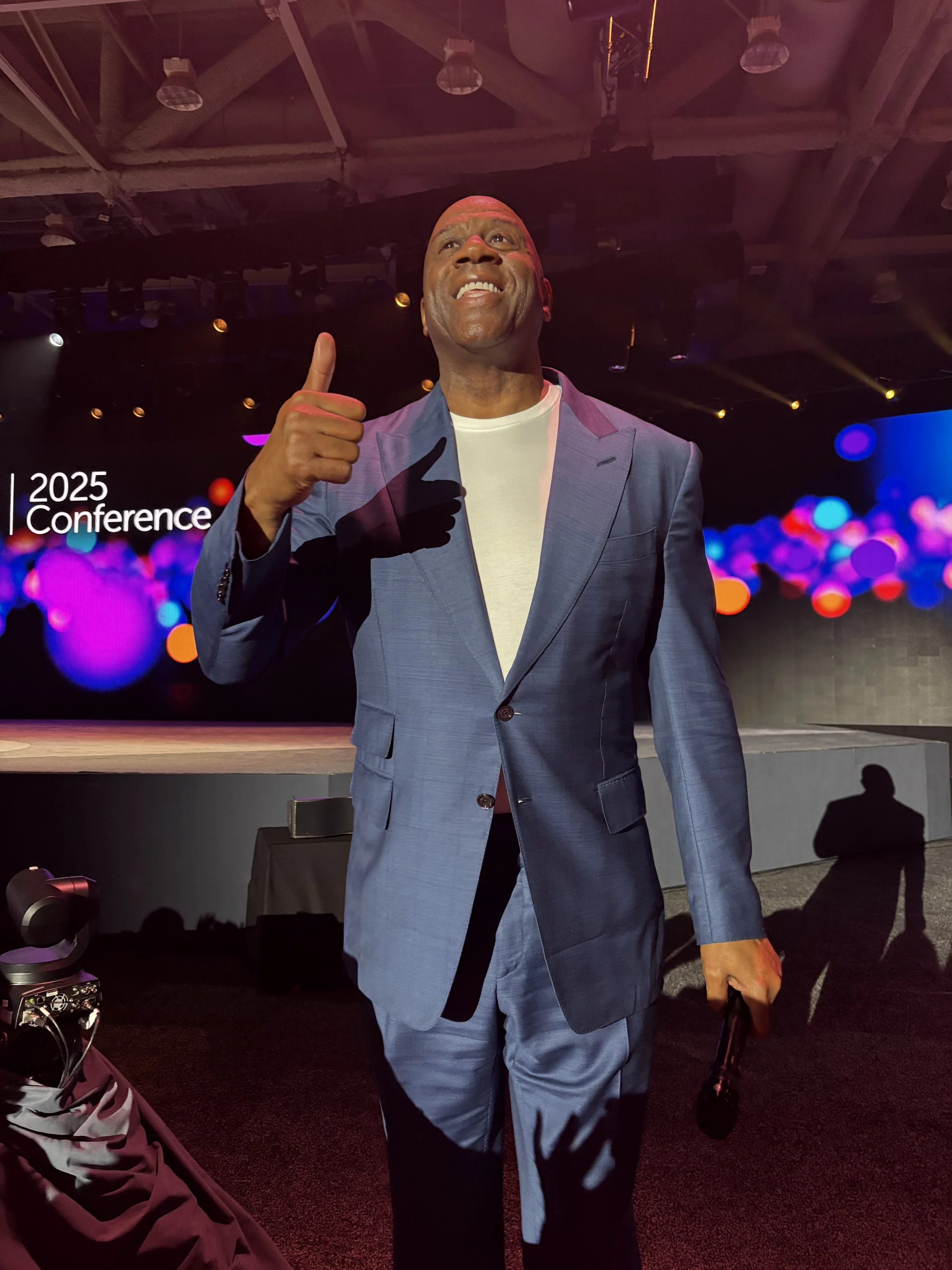 Though best known for his outstanding performance on the basketball court, Earvin Johnson demonstrated that he is not only an accomplished businessman and community leader but he’s also an incredible human being. When introduced, keynote speakers typically enter onto the main stage in a room set for thousands of attendees and stay there through the duration of their time. Magic immediately walked down the stairs and made his way into the crowd so that every section of the room had the chance for a close up photo op. He ran from section to section chanting, “Come on, camera man. Keep up.”